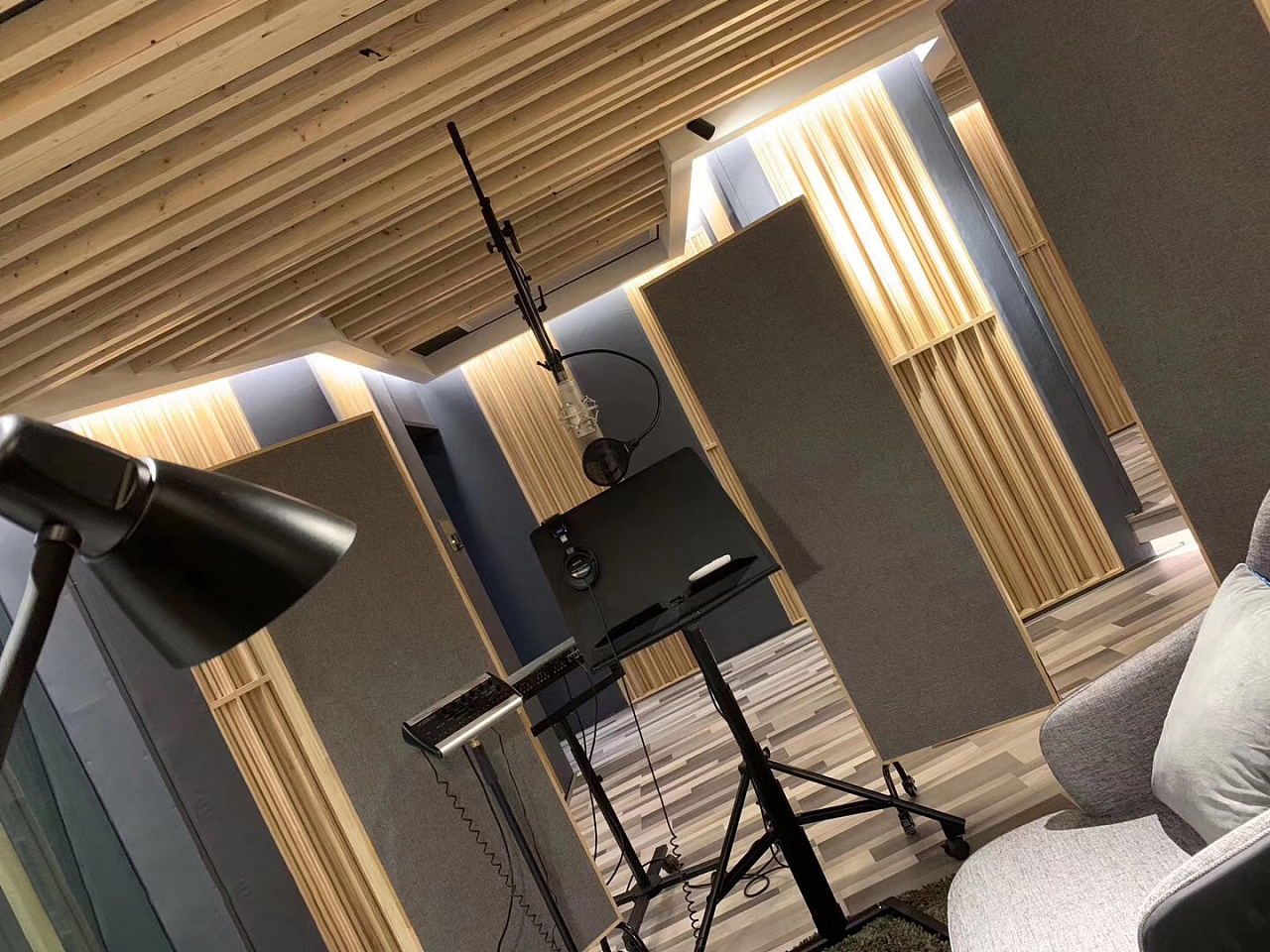 大多錄音室是用的隔音板、隔音棉、隔音氈組合隔音;再使用擴散體和吸音板進行建聲處理,使得聲音達到清澈干凈。隔音板的主要特點是保證隔聲效果。而吸音棉只能對到達吸音棉的聲波進行緩沖和吸收,讓有吸音棉的那個平面不再有聲波反射出去,從而讓主聲波變得更“干凈”。